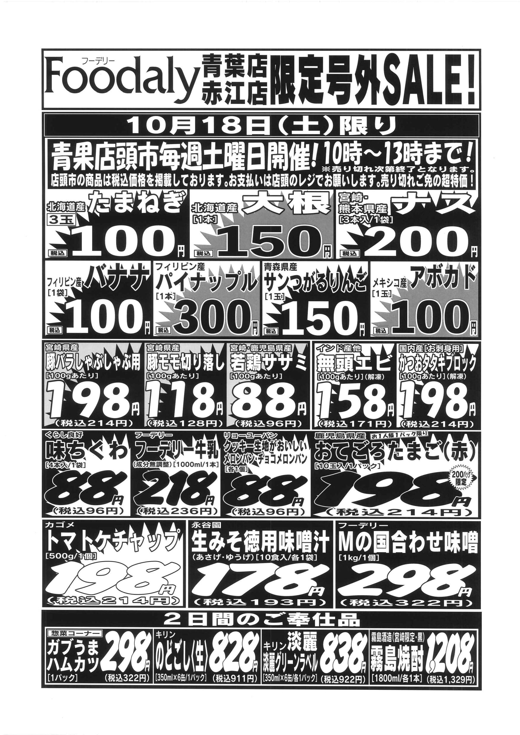 青葉・赤江限定号外SALE 10/18(土)〜10/19(日)