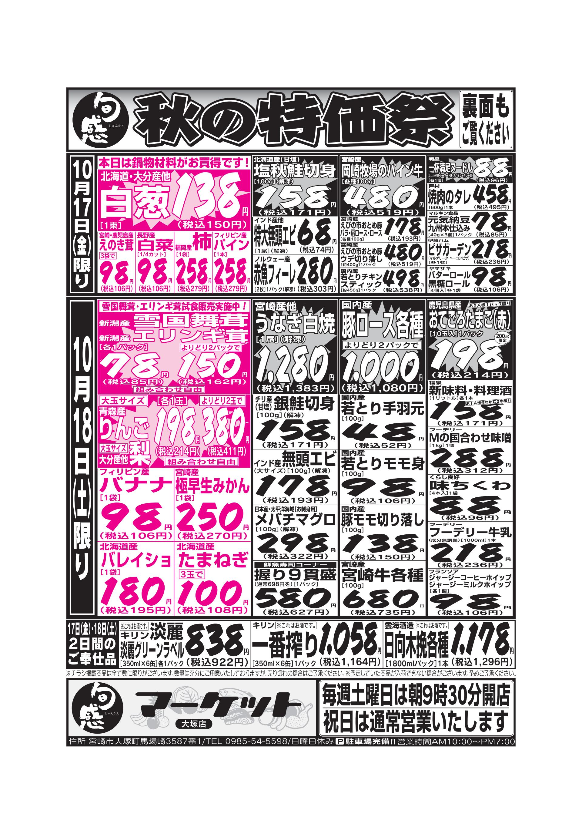 旬感マーケット大塚店:秋の特価祭 10/17(金)〜10/23(木)