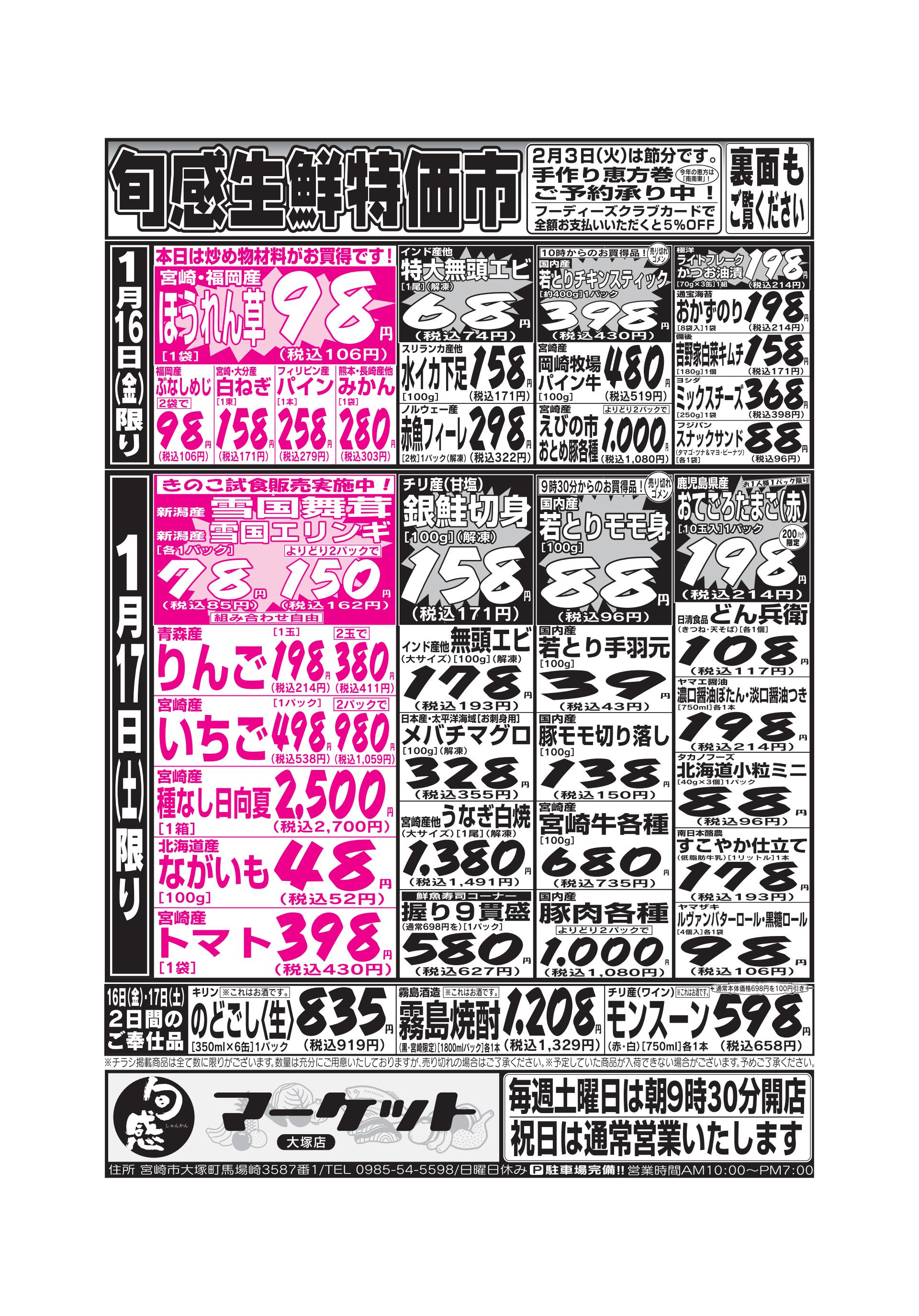 旬感マーケット大塚: 旬感生鮮特売市 1/16(金)〜1/22(木)