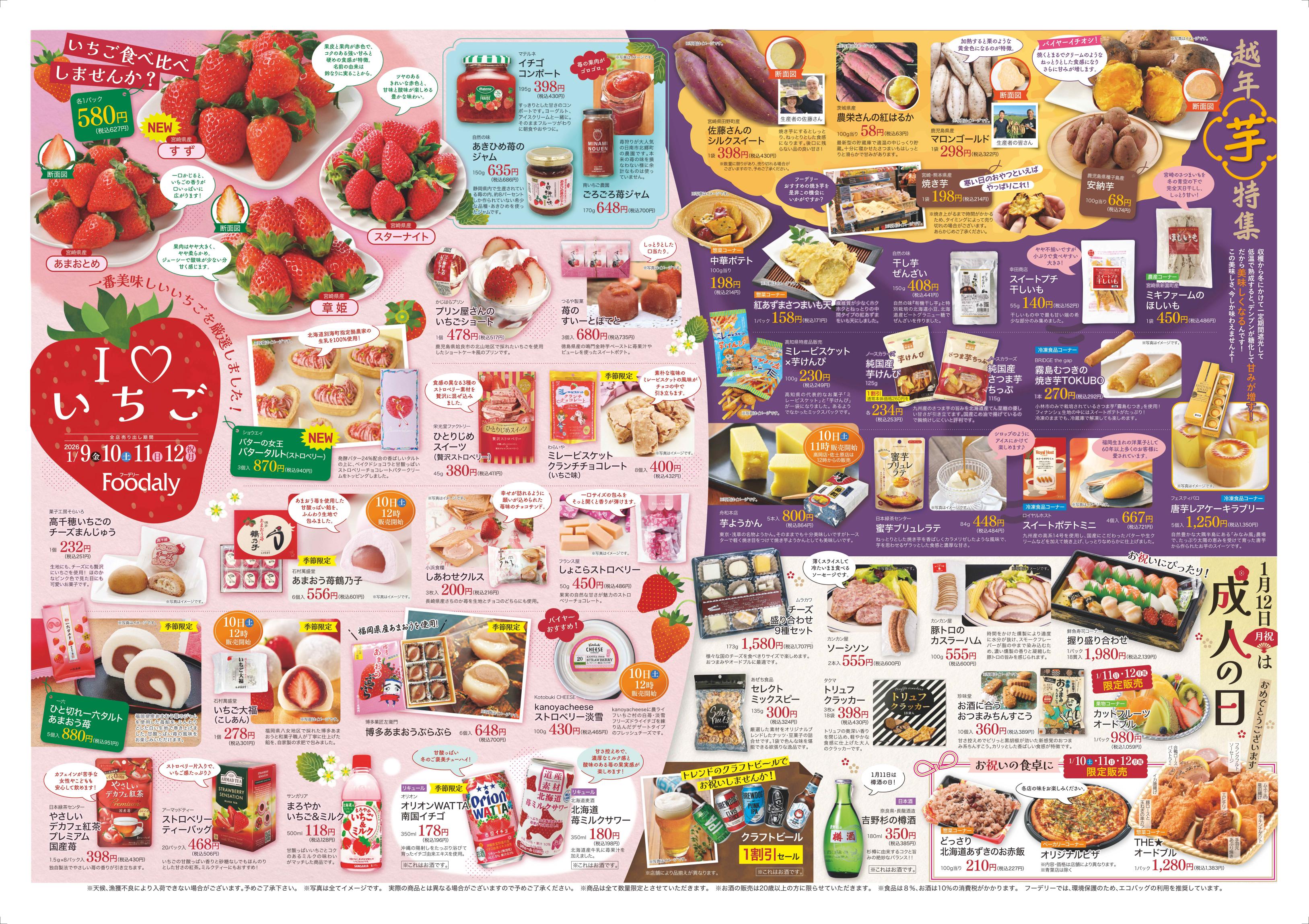 【Iloveいちご&越年芋特集芋&成人の日&肉VS魚】1/9(金)〜1/11(日) ※日替わりセール1/12(月)〜1/15(木)
