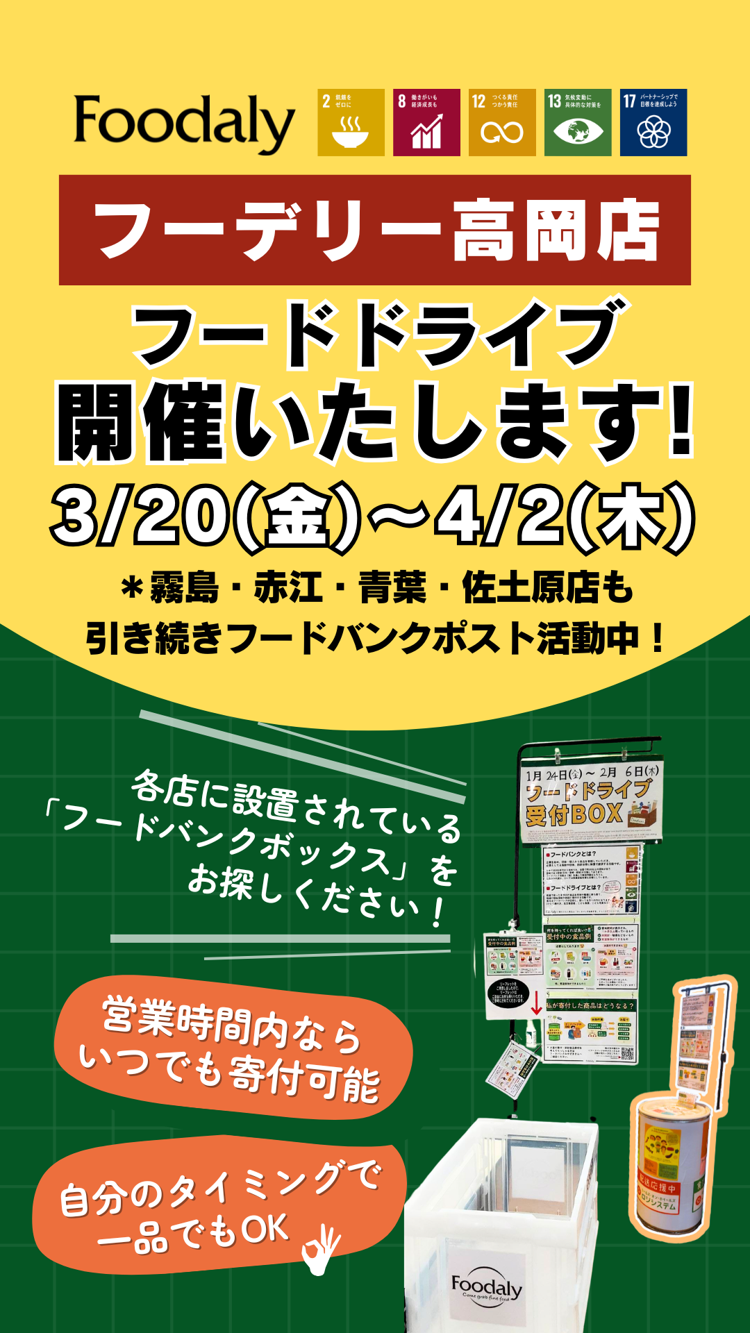 【フードドライブ】高岡店実施!皆様のご協力よろしくお願いします!